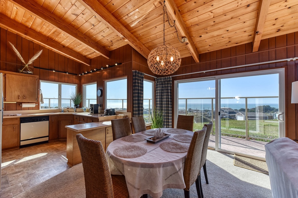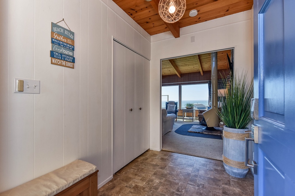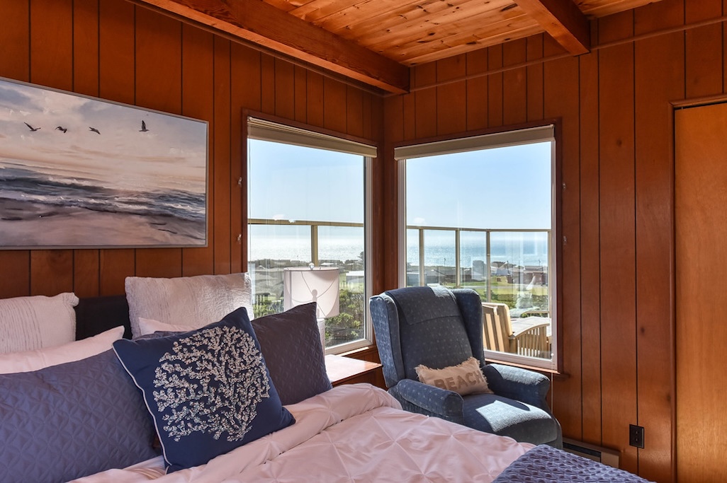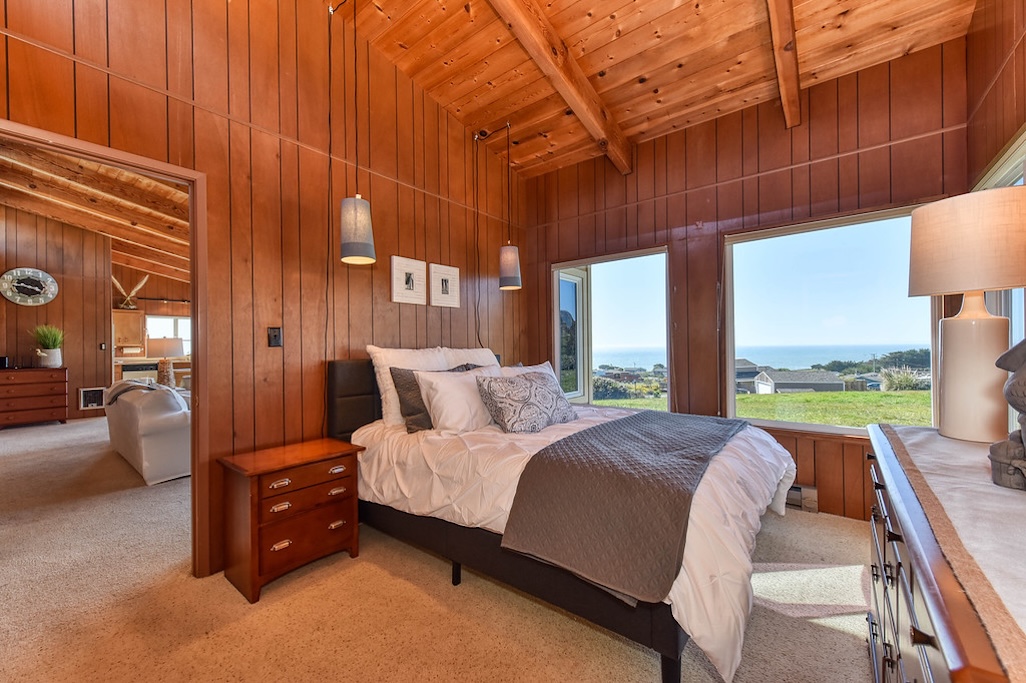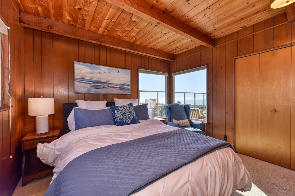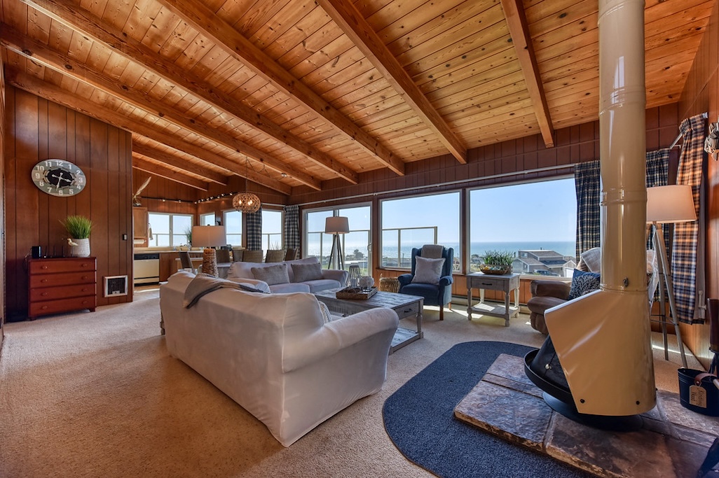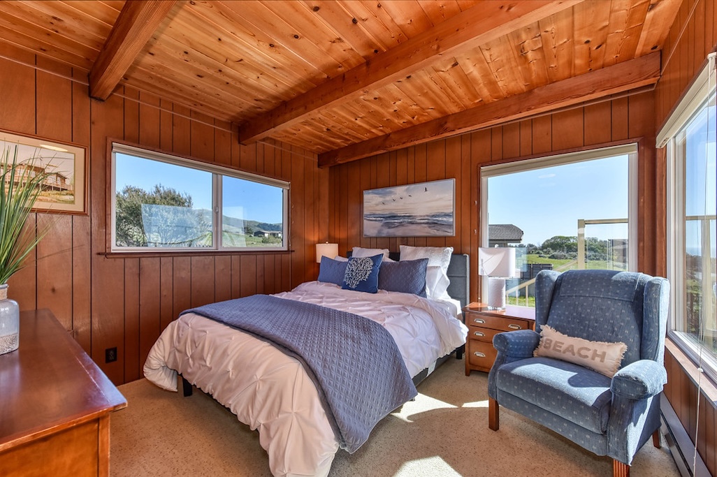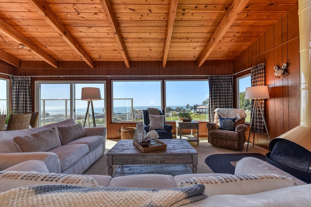 3 Bedrooms • 2 Bathrooms 2 Baths • Sleeps 4-6A perfect romantic getaway or relaxing family place, this 3BD/2BA house has stunning ocean and sunset views from almost all rooms. It is a 7-min walk to the beach, which eliminates the hassle of public parking. After a day of fun in the sun and sand, the wood-burning fireplace sets the perfect ambience for a glass of champagne or s'mores with the family. The brand new beds, full kitchen, full laundry, private parking, protected deck, and fenced courtyard invite you to relax and stay a while!